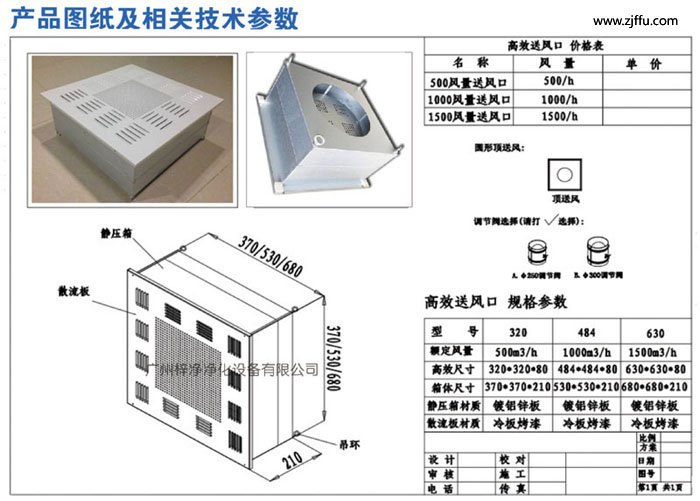 500風量高效送風口四件套包括靜壓箱、高效過濾器、手動調節閥、法蘭