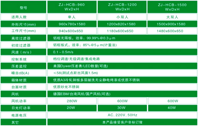 梓凈垂直流超凈工作臺技術參數