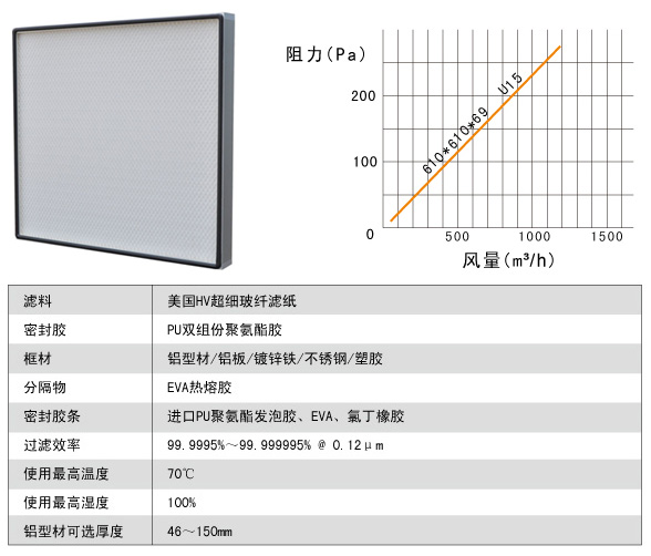過濾效率:99.9995%-99.999995%(U15、U16) MPPS