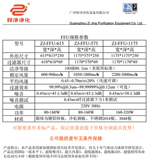 FFU工作時間長,低噪聲、免維護(hù)、震動小、可無級調(diào)速,風(fēng)速均勻,安裝方便等。